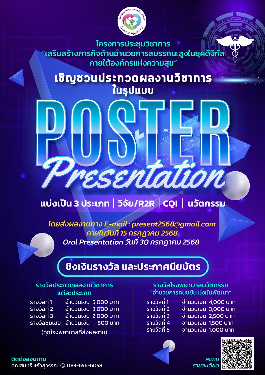 เชิญชวนประกวดผลงานวิชาการ โครงการประชุมวิชาการ “เสริมสร้างภารกิจด้านอำนวยการสมรรถนะสูงในยุคดิจิทัลภายใต้องค์กรแห่งความสุข”