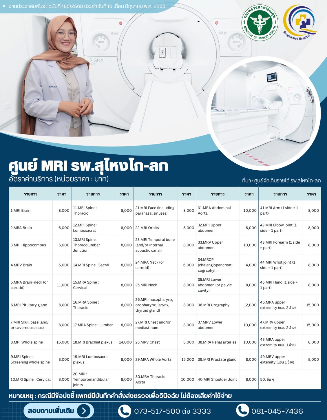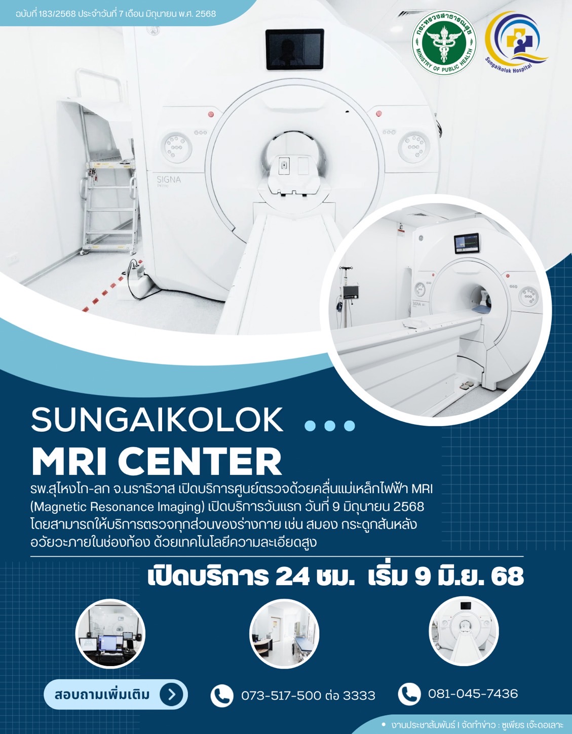 รพ.สุไหงโก-ลก เปิดบริการศูนย์ตรวจด้วยคลื่นแม่เหล็กไฟฟ้า MRI (Magnetic Resonance Imaging)