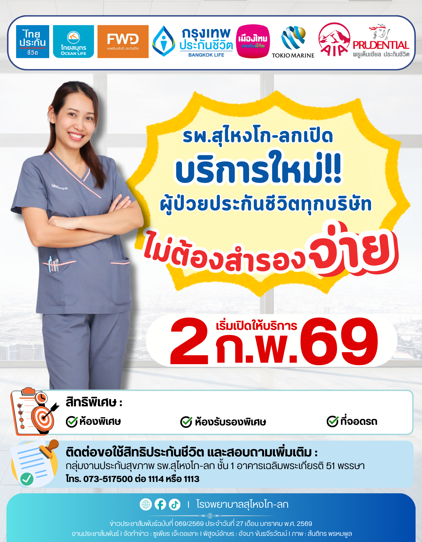 รพ.สุไหงโก-ลก เปิดให้บริการผู้ป่วยประกันชีวิตโดยไม่ต้องสำรองจ่าย เริ่ม 2 กุมภาพันธ์ 2569