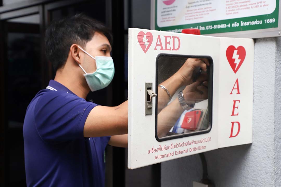 วันที่ 11 กุมภาพันธ์ 2569 นพ.วุฒิชัย ดิลกธราดล ผู้อำนวยการโรงพยาบาลสุไหงโก-ลก มอบหมาย นพ.จรุงวิทย์ ปลื้มเปรมจิตร นายแพทย์เชี่ยวชาญสาขาเวชศาสตร์ฉุกเฉิน นำทีมศูนย์เครื่องมือแพทย์ลงพื้นที่ซ่อมบำรุงรักษาเครื่องช็อกไฟฟ้าหัวใจอัตโนมัติ (Automated External Defibrillator : AED) ในเขตพื้นที่ความรับผิดชอบ จำนวน 15 จุด ทั้งนี้เพื่อบำรุงรักษาให้เครื่อง AED ให้มีสภาพพร้อมใช้งานอยู่เสมอ สามารถนำไปใช้ช่วยฟื้นคืนชีพขั้นพื้นฐานเมื่อเเกิดเหตุในพื้นที่และรับประกันประสิทธิภาพสูงสุดในการช่วยชีวิตผู้ป่วยที่มีภาวะหัวใจหยุดเต้นเฉียบพลัน