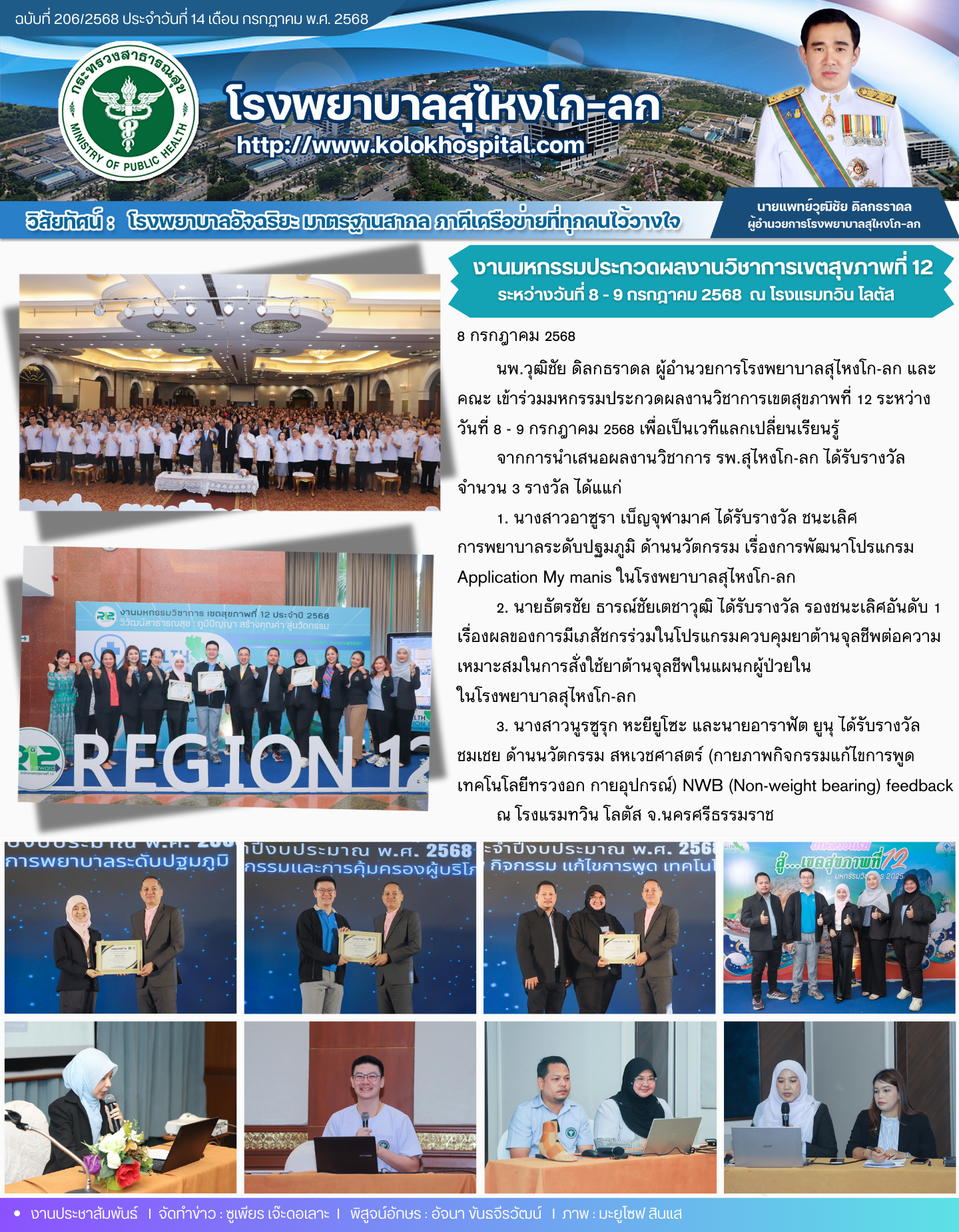 งานมหกรรมประกวดผลงานวิชาการเขตสุขภาพที่ 12 ระหว่างวันที่ 8-9 กรกฎาคม 2568 ณ โรงแรมทวิน โลตัส November 3, 2025 | 0 Comment ประชาสัมพันธ์