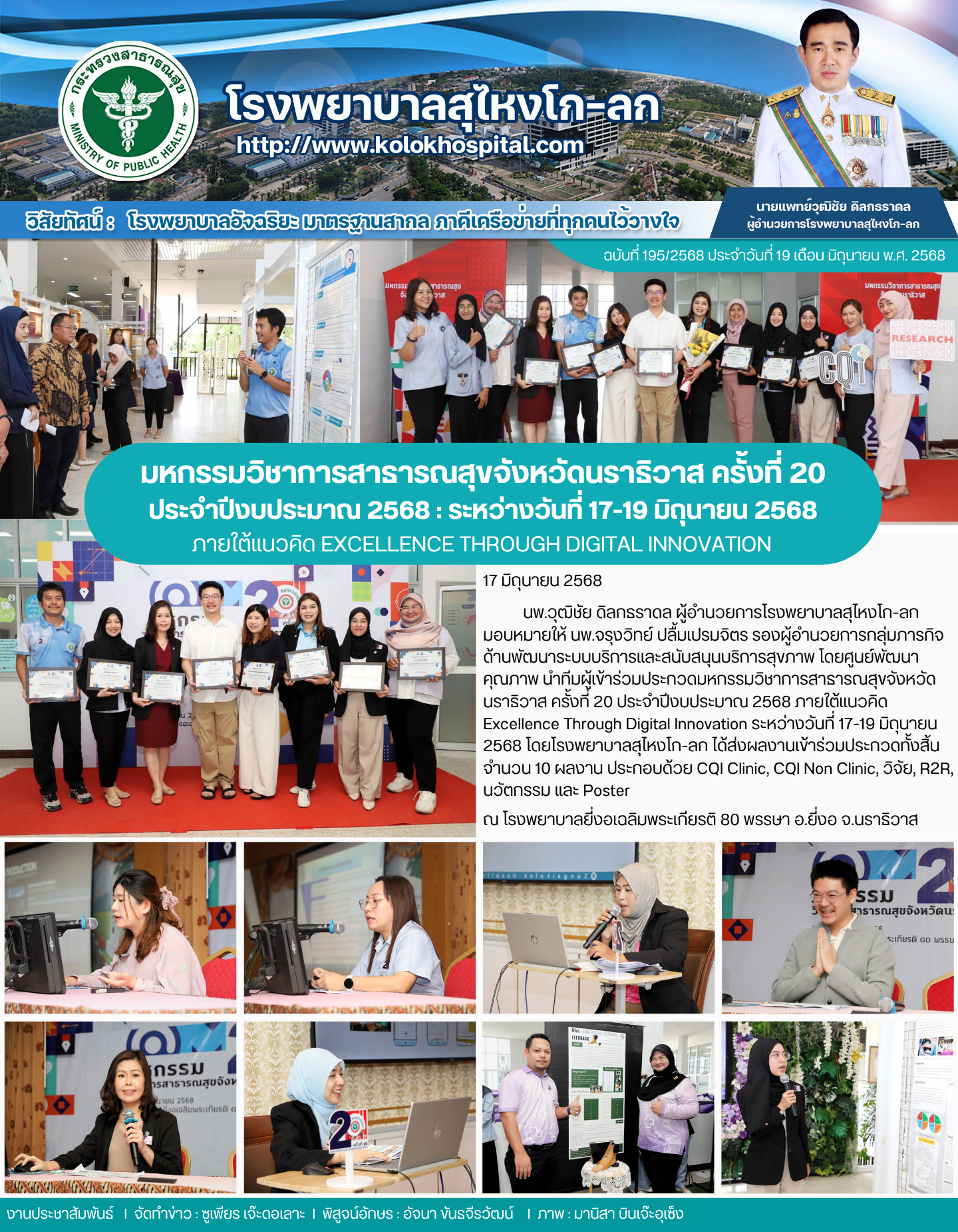 มหกรรมวิชาการสาธารณสุขจังหวัดนราธิวาส ครั้งที่20 ประจำปีงบประมาณ 2568 November 3, 2025 | 0 Comment ประชาสัมพันธ์