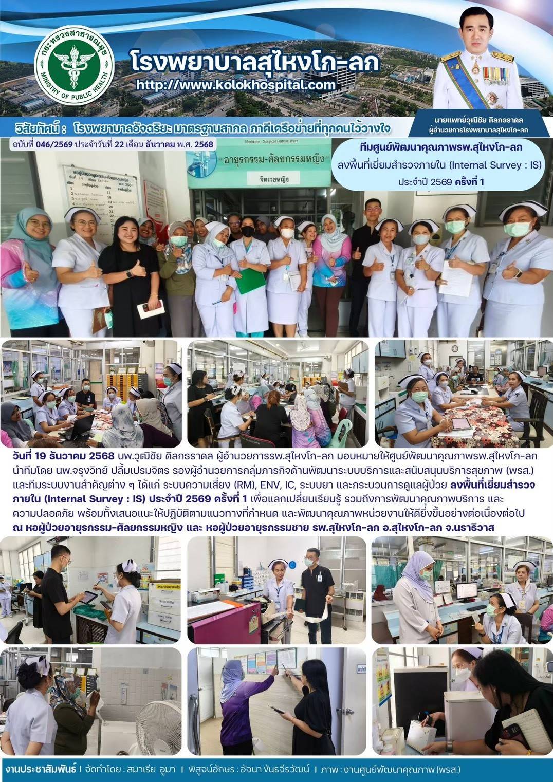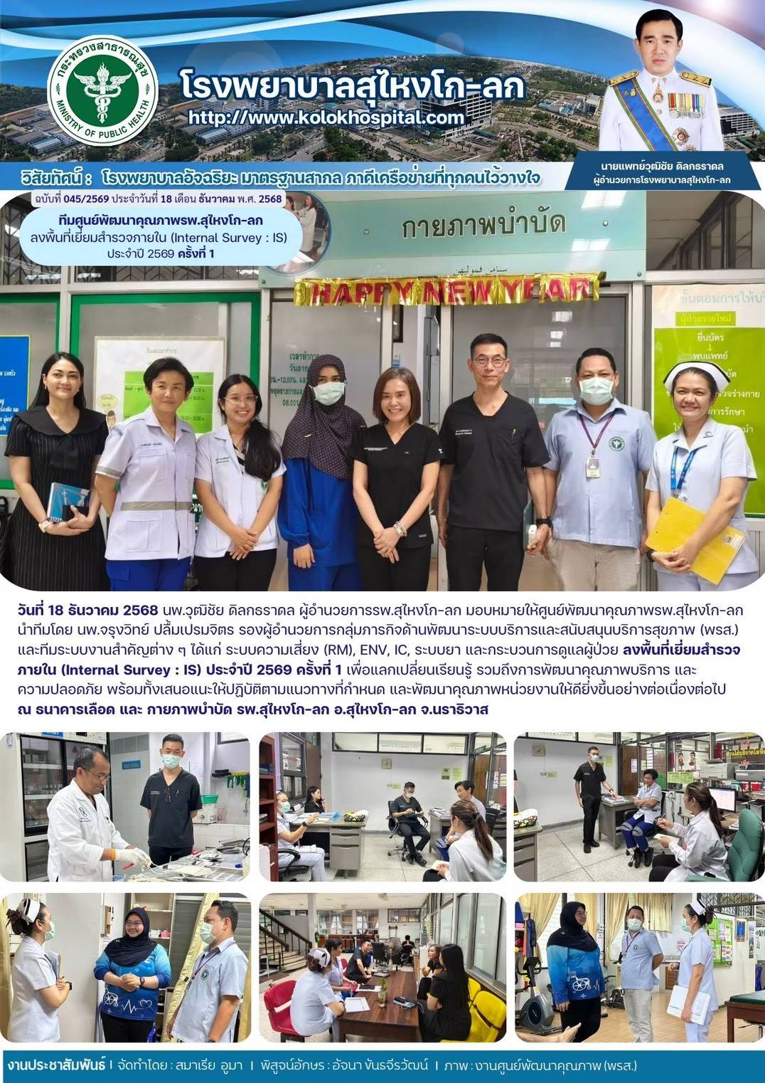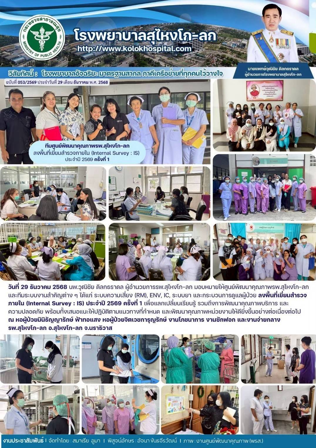 ทีมศูนย์พัฒนาคุณภาพ รพ.สุไหงโก-ลก ลงพื้นที่เยี่ยมสำรวจภายใน (Internal Survey : IS) ประจำปี2569 ครั้งที่1 March 6, 2026 | 0 Comment ภาพกิจกรรม