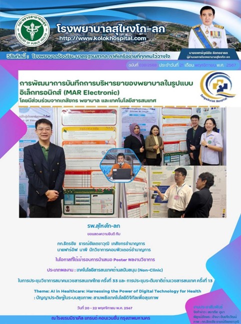 รพ.สุไหงโก-ลก ขอแสดงความยินดีกับ ภก.ธัตรชัย ธารณ์ชัยเตชาวุฒิ เภสัชกรชำนาญการ และนายฟาร์อิฟ นาพี นักวิชาการคอมพิวเตอร์ ในโอกาสได้รับการเข้ารอบการนำเสนอ Poster ผลงานวิชาการ ในการประชุมวิชาการสมาคมเวชสารสนเทศครั้งที่33 และการประชุมระดับชาติด้านเวชสารสนเทศ ครั้งที่13